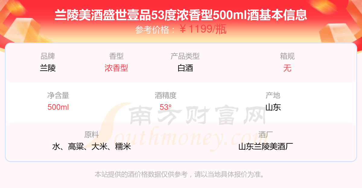 蘭陵美酒盛世壹品53度濃香型500ml基本信息