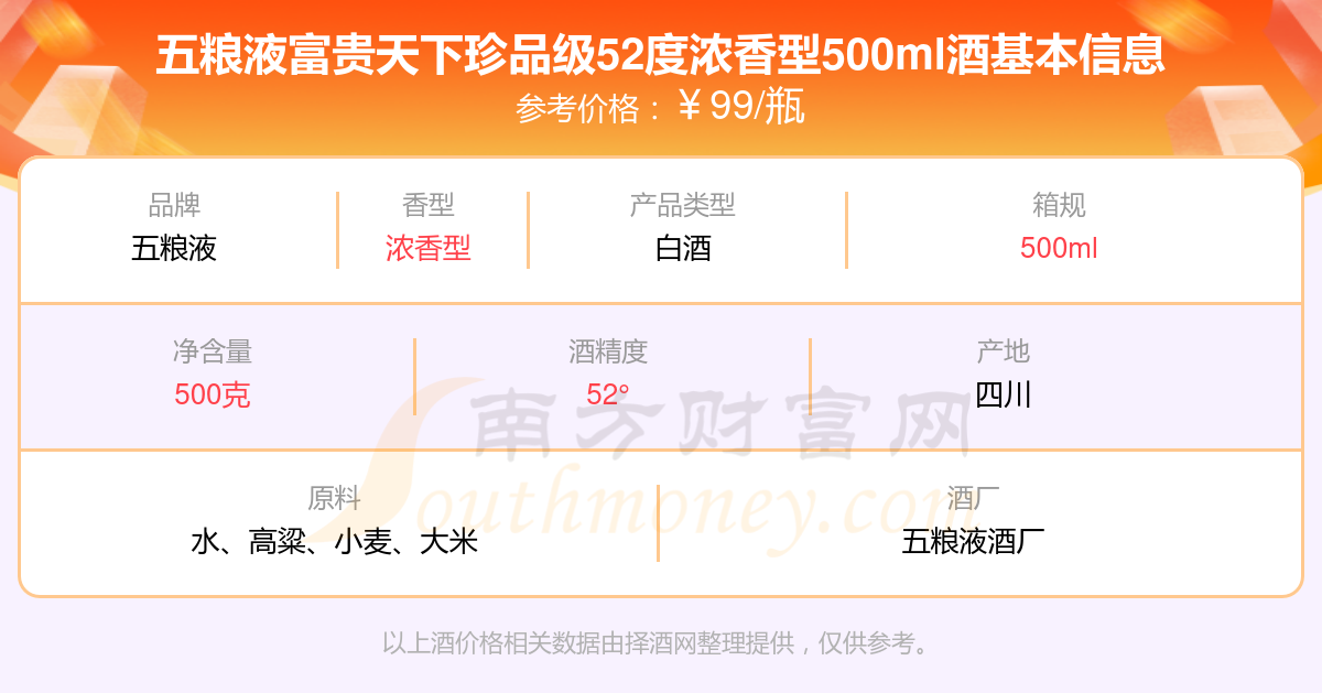五糧液富貴天下珍品級52度濃香型500ml基本信息