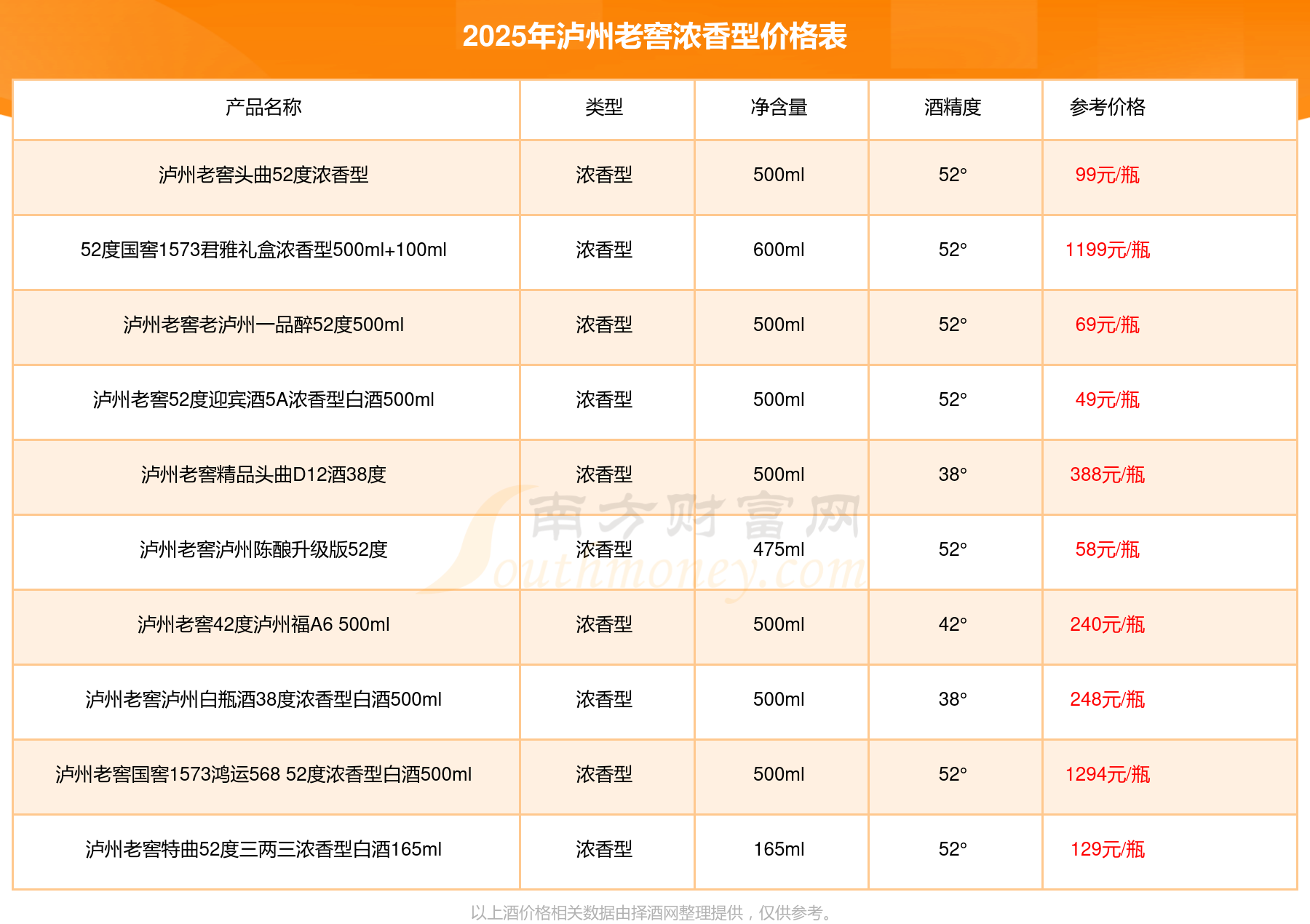 2025年瀘州老窖濃香型酒瀘州老窖國窖1573春釀鼠兆豐年E 55度、瀘州老窖國窖1573生命中的那壇酒55度014、瀘州老窖國窖1573春釀鼠兆豐年A 55度等最新價格如下:瀘州老窖國窖1573春釀鼠兆豐年E 55度參考價17999元/瓶、瀘州老窖國窖1573生命中的那壇酒55度014參考價9999元/瓶、瀘州老窖國窖1573春釀鼠兆豐年A 55度參考價5088元/瓶。