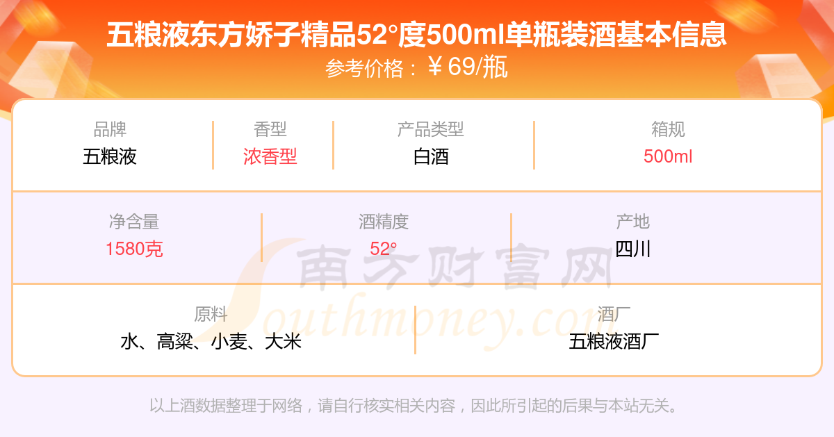 五糧液東方嬌子精品52°度500ml單瓶裝基本信息