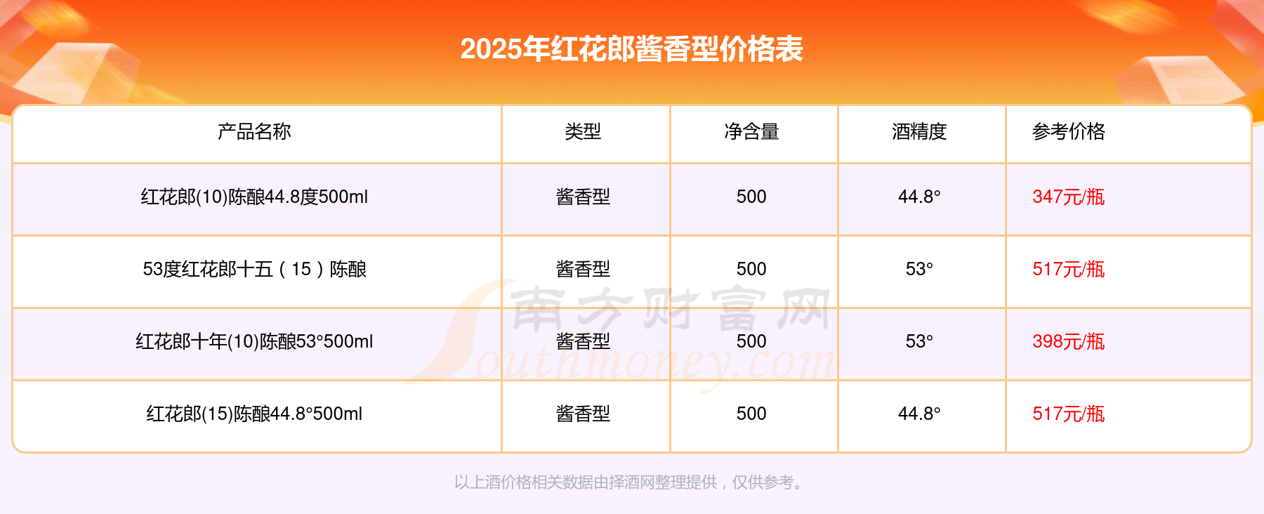 2025紅花郎醬香型酒最新價格: