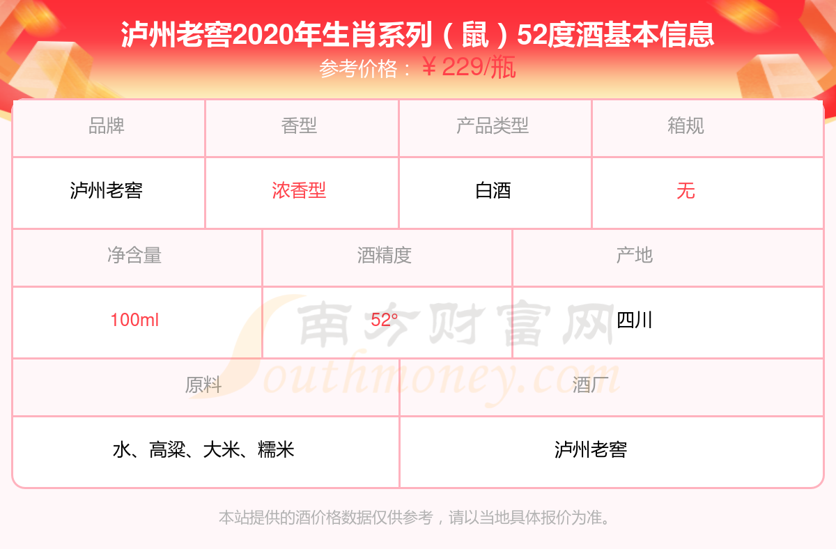 瀘州老窖2020年生肖系列(鼠)52度基本信息