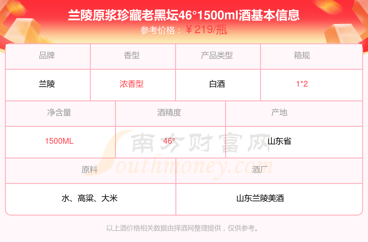 蘭陵原漿珍藏老黑壇46°1500ml基本信息