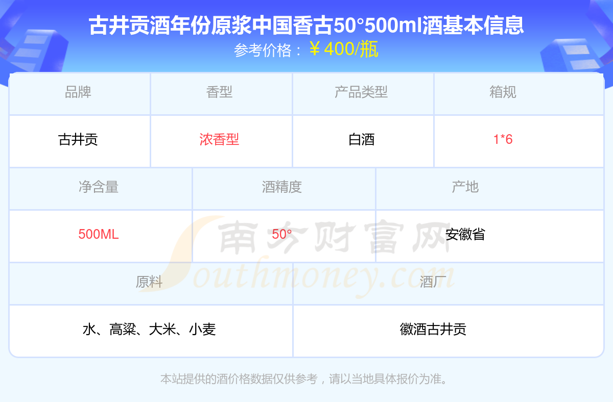 古井貢酒年份原漿中國(guó)香古50°500ml基本信息