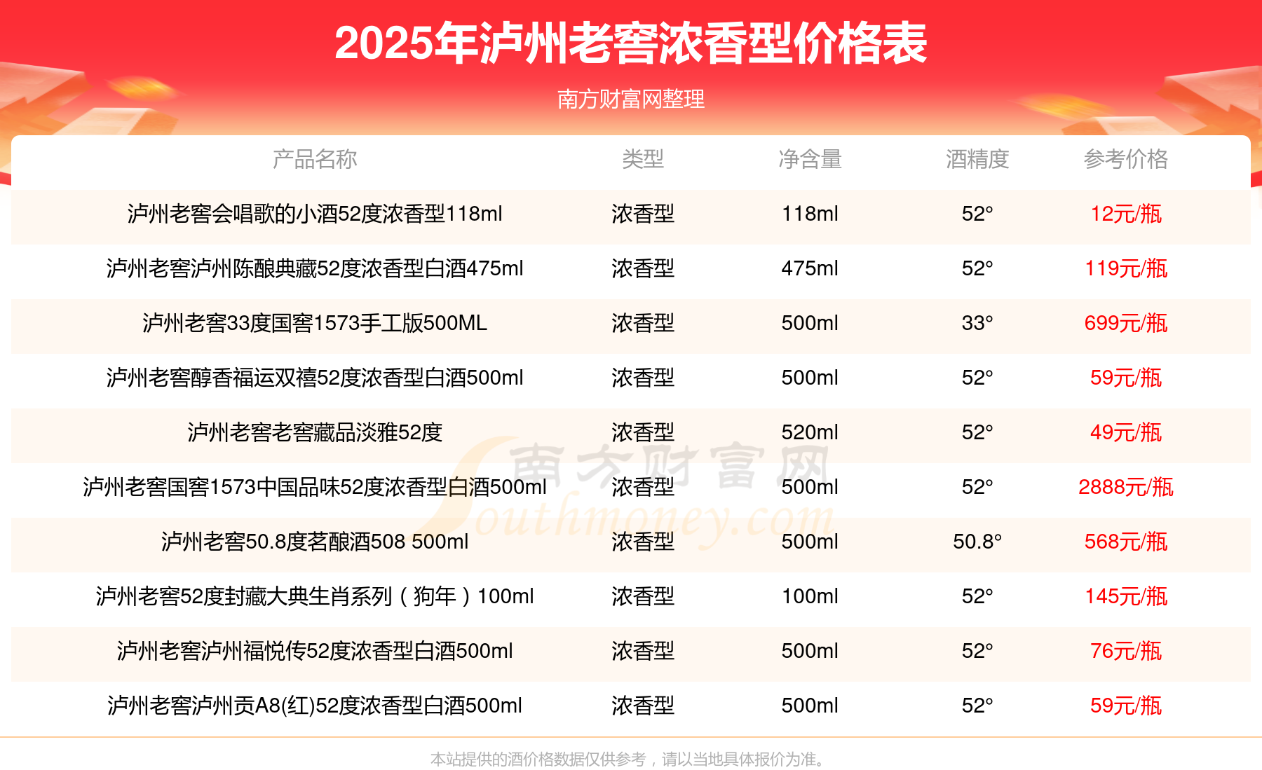 瀘州老窖濃香型酒最新價(jià)格2025: