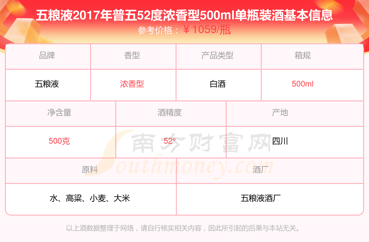 五糧液2017年普五52度濃香型500ml單瓶裝基本信息