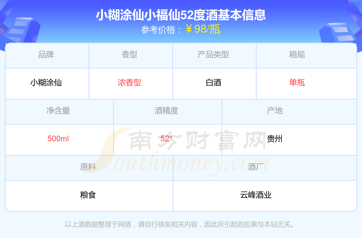 小糊涂仙小福仙52度基本信息