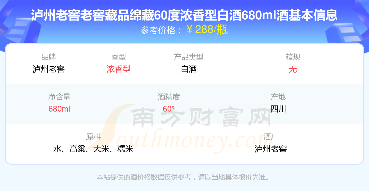 瀘州老窖老窖藏品綿藏60度濃香型白酒680ml基本信息