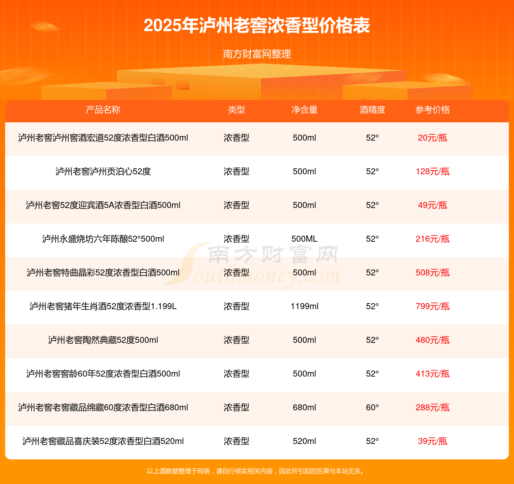 瀘州老窖濃香型酒最新價格2025:瀘州老窖國窖1573春釀鼠兆豐年E 55度參考價17999元/瓶、瀘州老窖國窖1573生命中的那壇酒55度014參考價9999元/瓶、瀘州老窖國窖1573春釀鼠兆豐年A 55度參考價5088元/瓶。