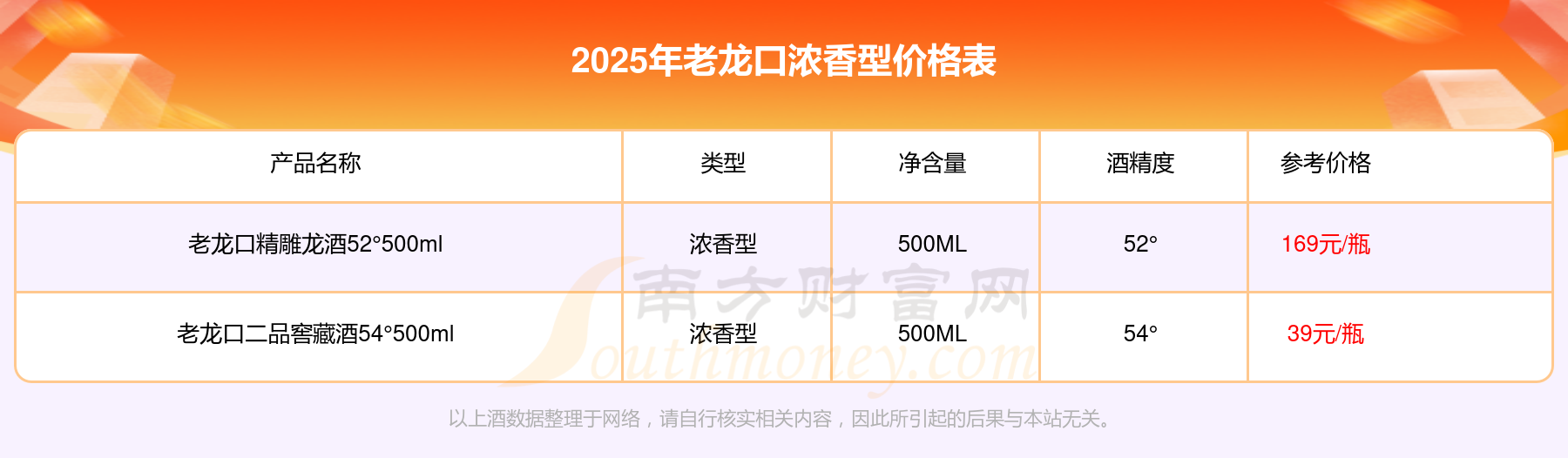 2025年老龍口濃香型酒老龍口精雕龍酒52°500ml、老龍口二品窖藏酒54°500ml等最新價格如下:老龍口精雕龍酒52°500ml參考價169元/瓶、老龍口二品窖藏酒54°500ml參考價39元/瓶。