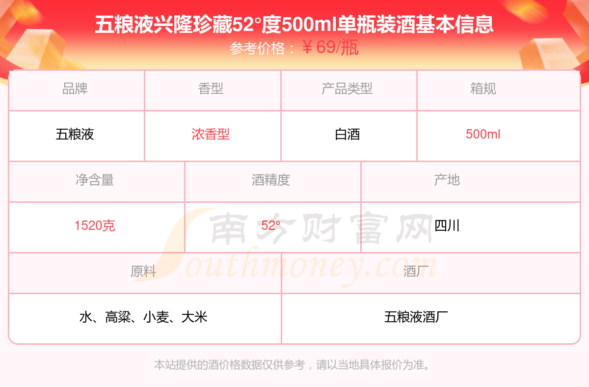 五糧液興隆珍藏52°度500ml單瓶裝基本信息