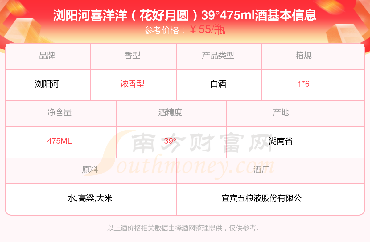瀏陽(yáng)河喜洋洋(花好月圓)39°475ml基本信息