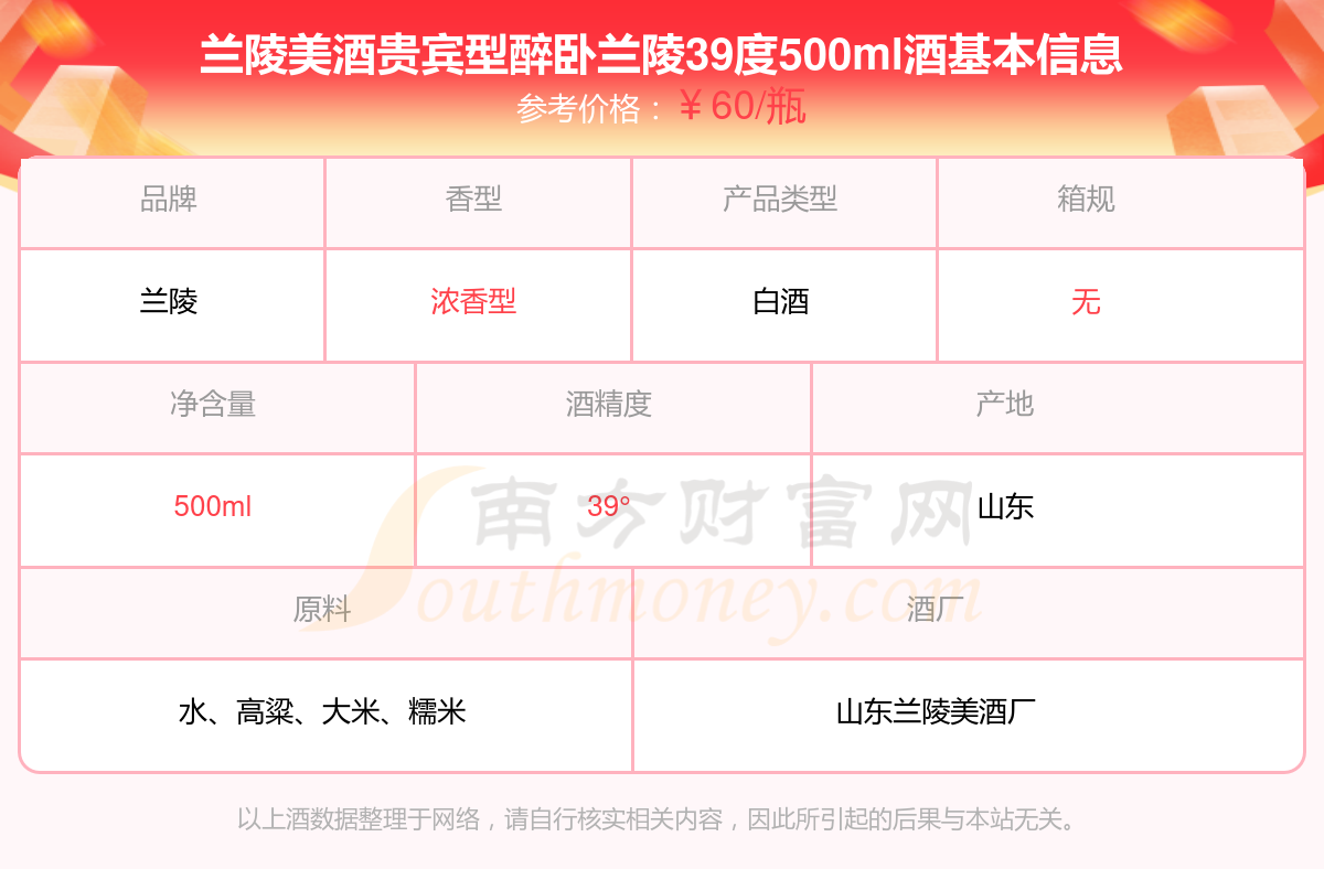 蘭陵美酒貴賓型醉臥蘭陵39度500ml基本信息