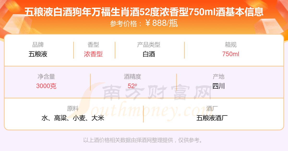 五糧液白酒狗年萬(wàn)福生肖酒52度濃香型750ml基本信息