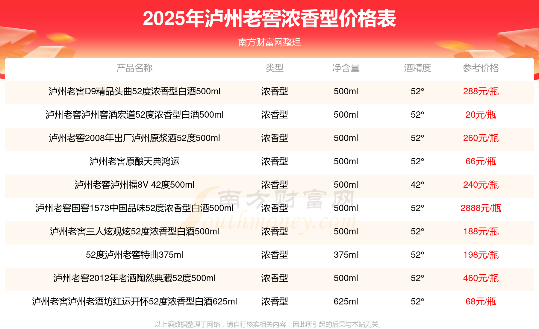 2025年瀘州老窖濃香型酒瀘州老窖國窖1573春釀鼠兆豐年E 55度、瀘州老窖國窖1573生命中的那壇酒55度014、瀘州老窖國窖1573春釀鼠兆豐年A 55度、瀘州老窖國窖1573生命中的那壇酒55度013濃香型白酒1000ml、瀘州老窖國窖1573生命中的那壇酒55度009 1000ml等最新價格如下: