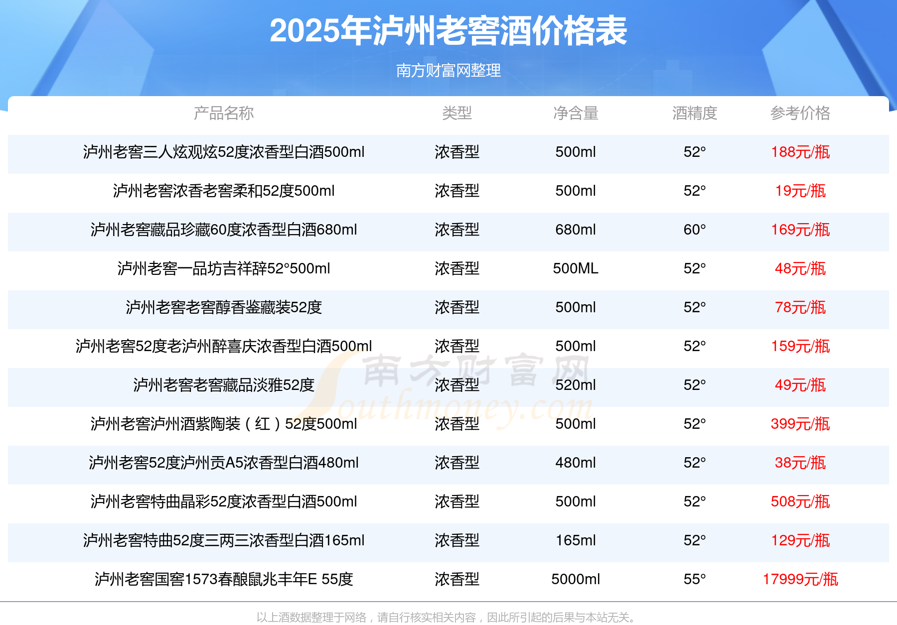 2025年瀘州老窖酒瀘州老窖國(guó)窖1573春釀鼠兆豐年E 55度、瀘州老窖國(guó)窖1573生命中的那壇酒55度014、瀘州老窖國(guó)窖1573春釀鼠兆豐年A 55度等最新價(jià)格如下: