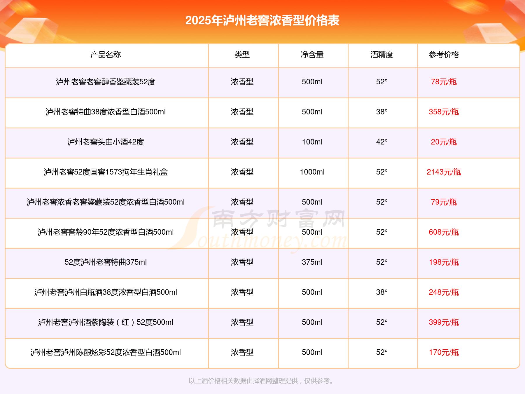 2025年,瀘州老窖國窖1573春釀鼠兆豐年E 55度、瀘州老窖國窖1573生命中的那壇酒55度014、瀘州老窖國窖1573春釀鼠兆豐年A 55度、瀘州老窖國窖1573生命中的那壇酒55度013濃香型白酒1000ml、瀘州老窖國窖1573生命中的那壇酒55度009 1000ml、瀘州老窖國窖1573中國品味52度濃香型白酒500ml等瀘州老窖濃香型酒價格如下: