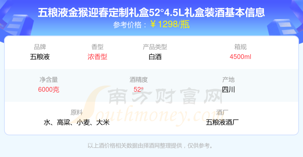 五糧液金猴迎春定制禮盒52°4.5L禮盒裝基本信息