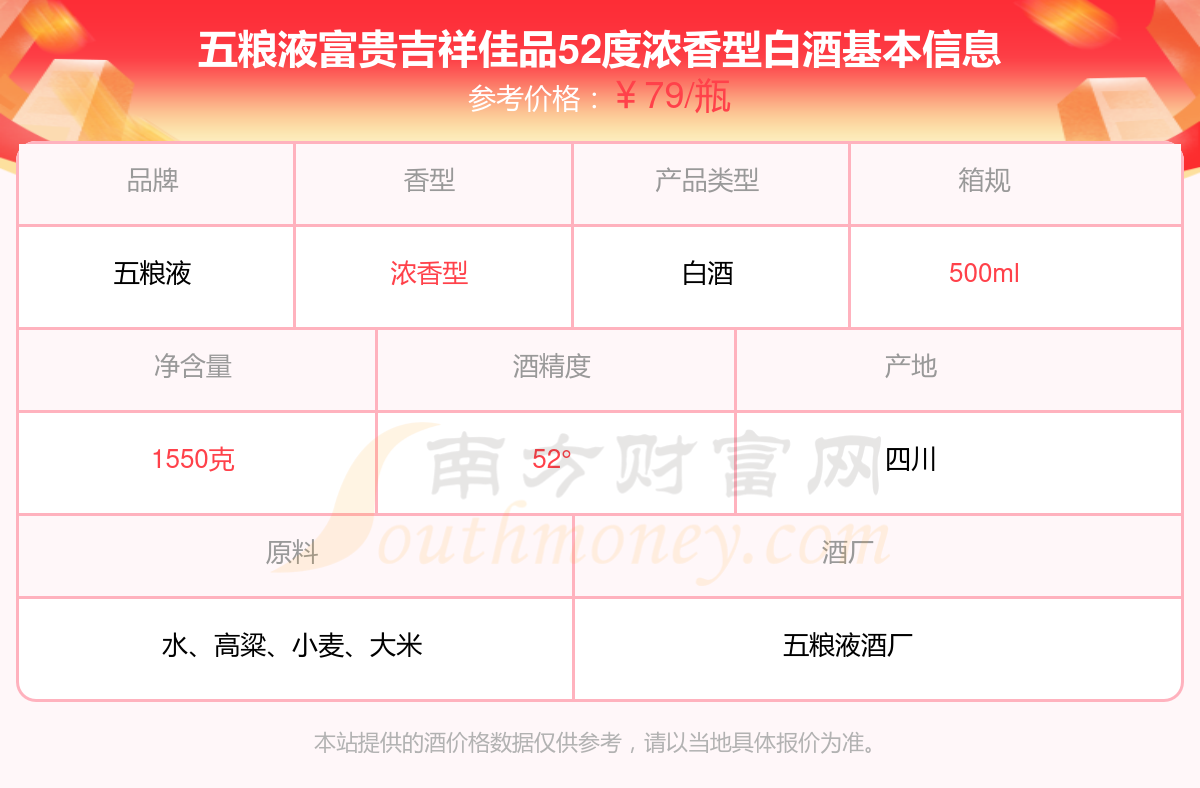 五糧液富貴吉祥佳品52度濃香型白酒基本信息