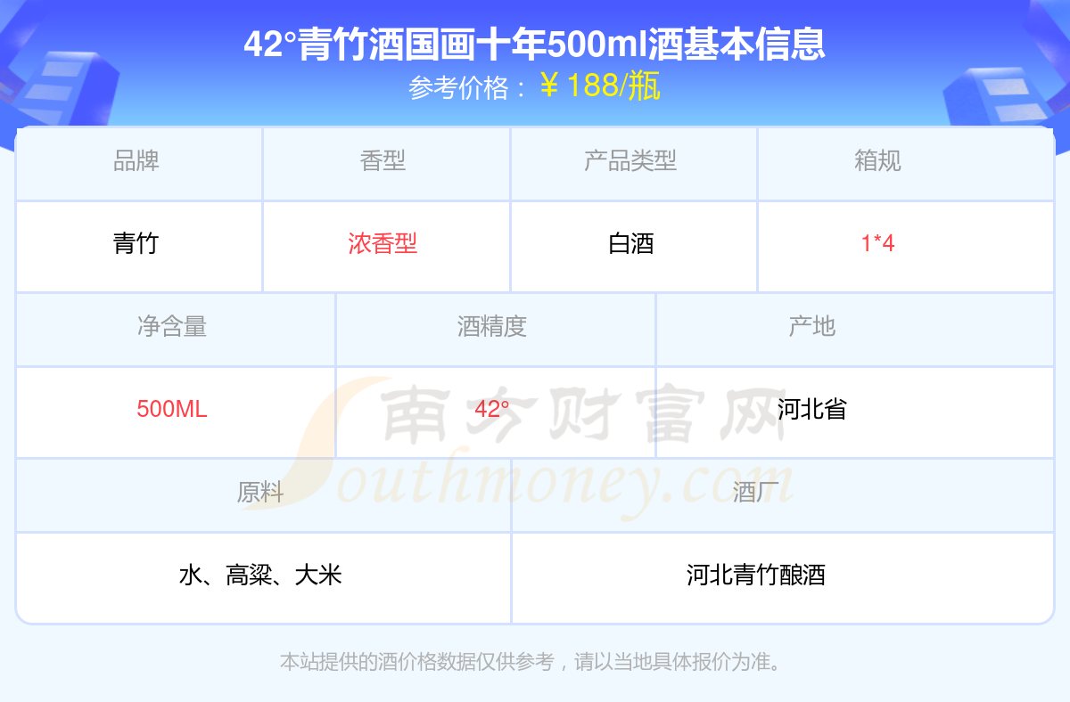 42°青竹酒國(guó)畫(huà)十年500ml基本信息