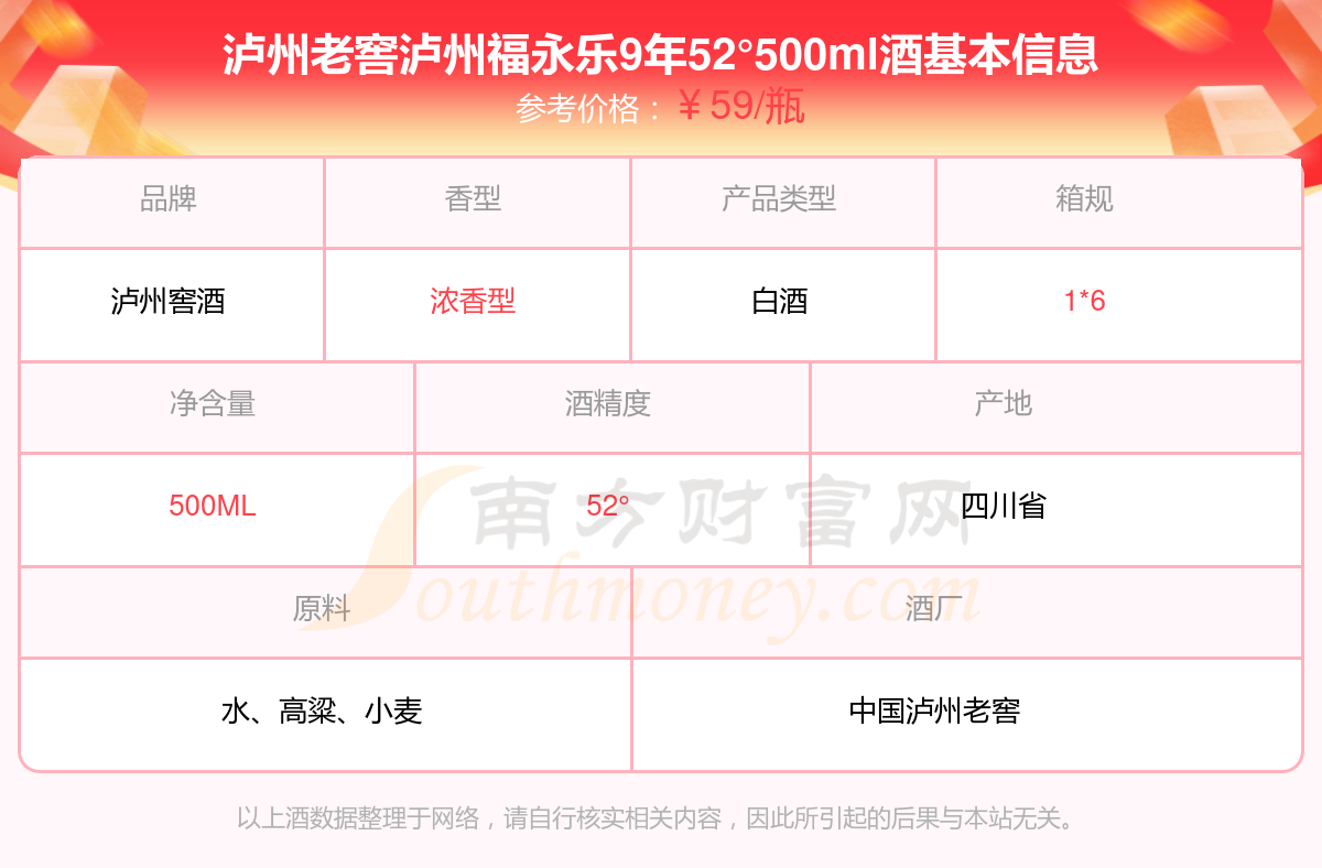 瀘州老窖瀘州福永樂9年52°500ml基本信息