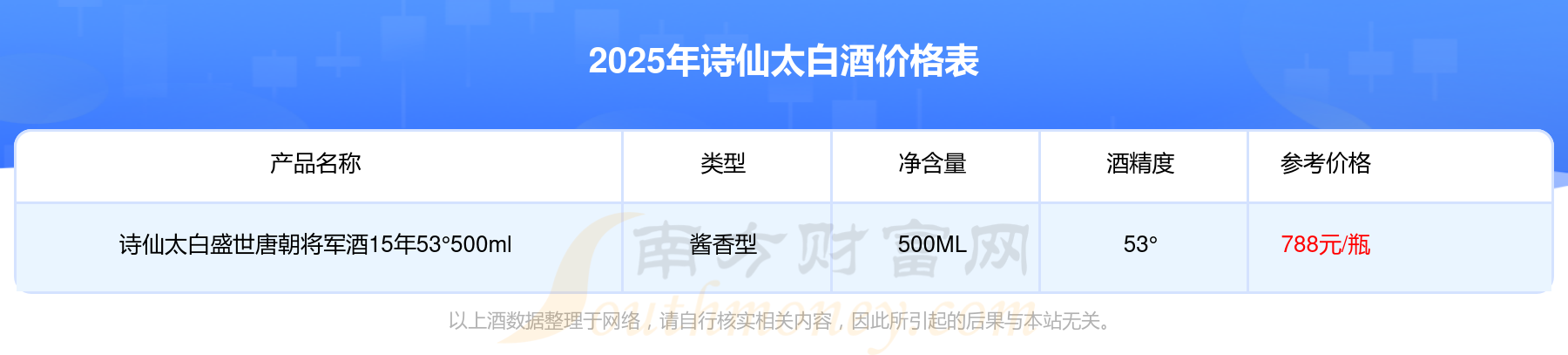 以上酒數(shù)據(jù)整理于網(wǎng)絡(luò),請(qǐng)自行核實(shí)相關(guān)內(nèi)容,因此所引起的后果與本站無關(guān)。