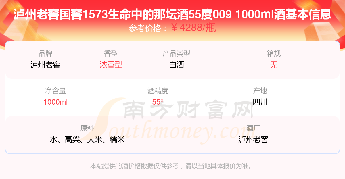 瀘州老窖國窖1573生命中的那壇酒55度009 1000ml基本信息