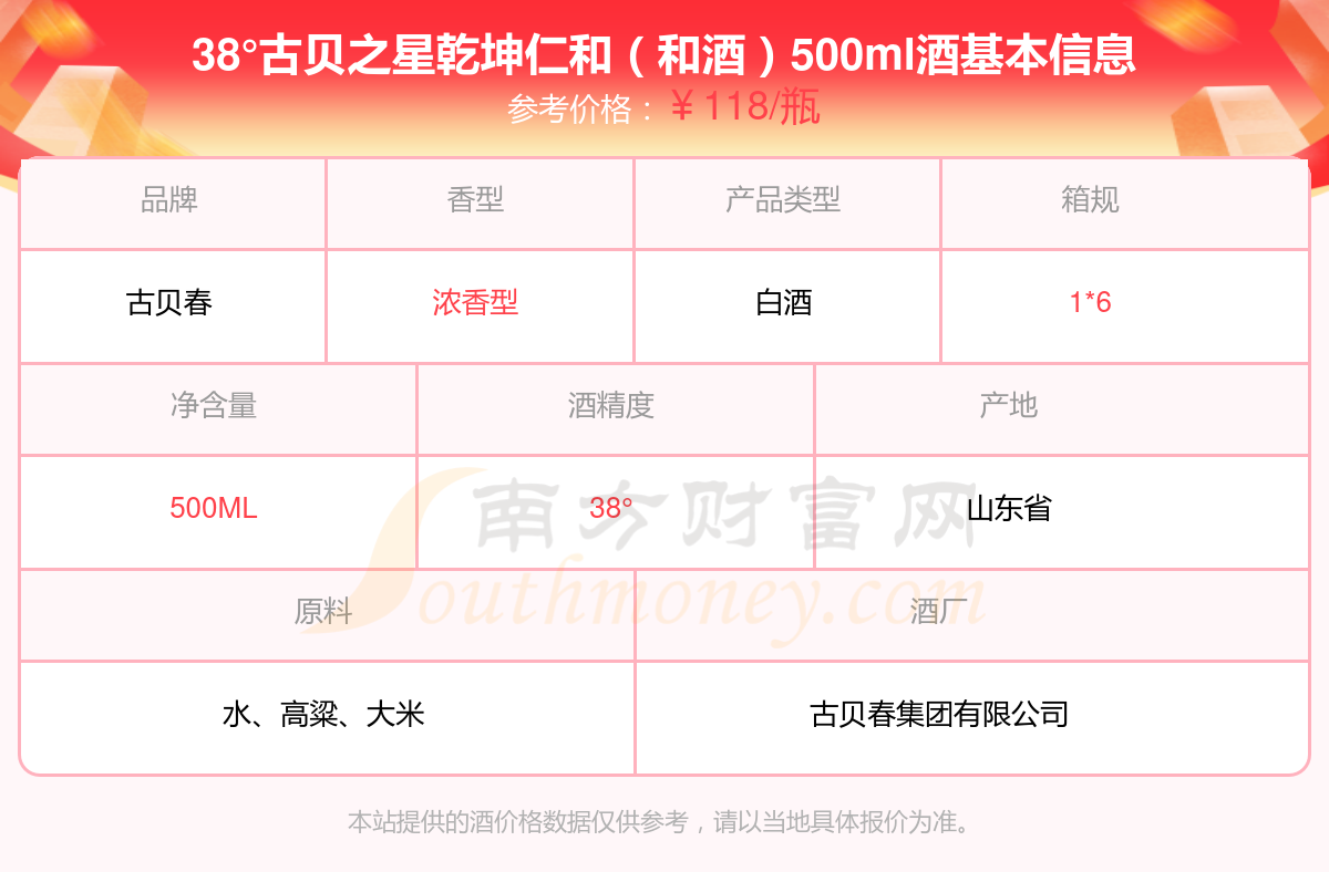 38°古貝之星乾坤仁和(和酒)500ml基本信息