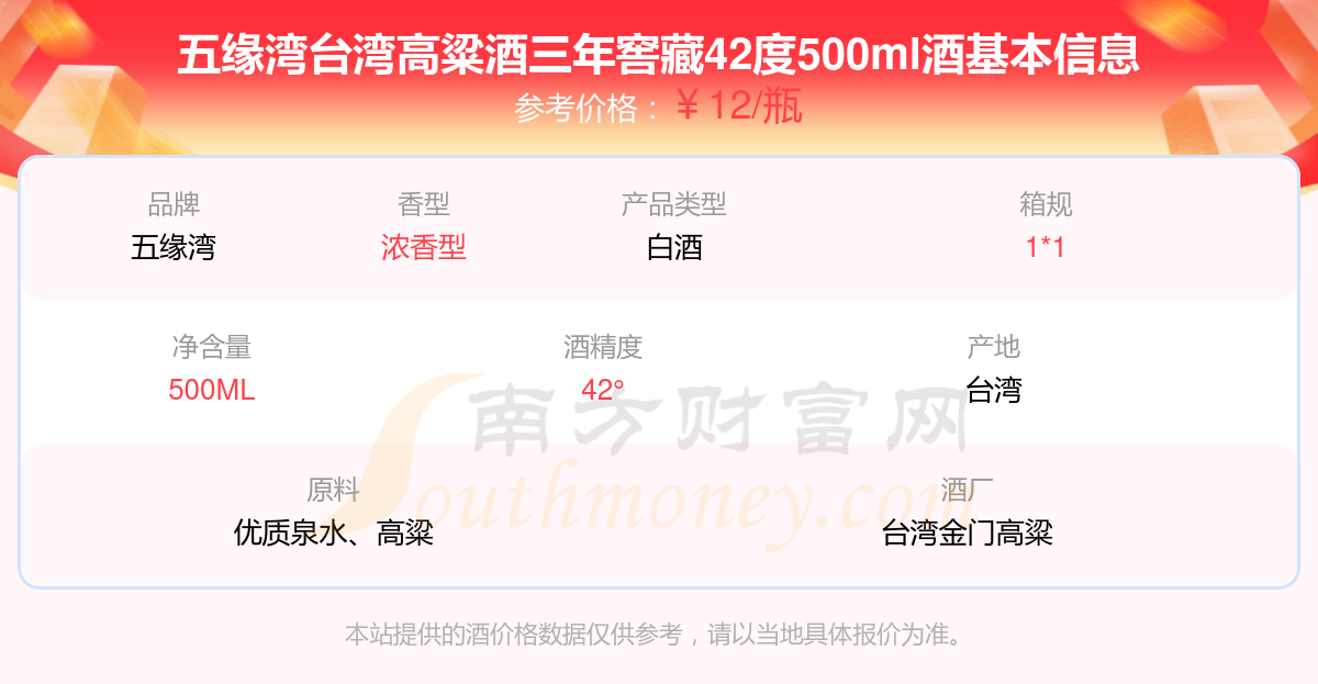五緣灣臺(tái)灣高粱酒三年窖藏42度500ml基本信息