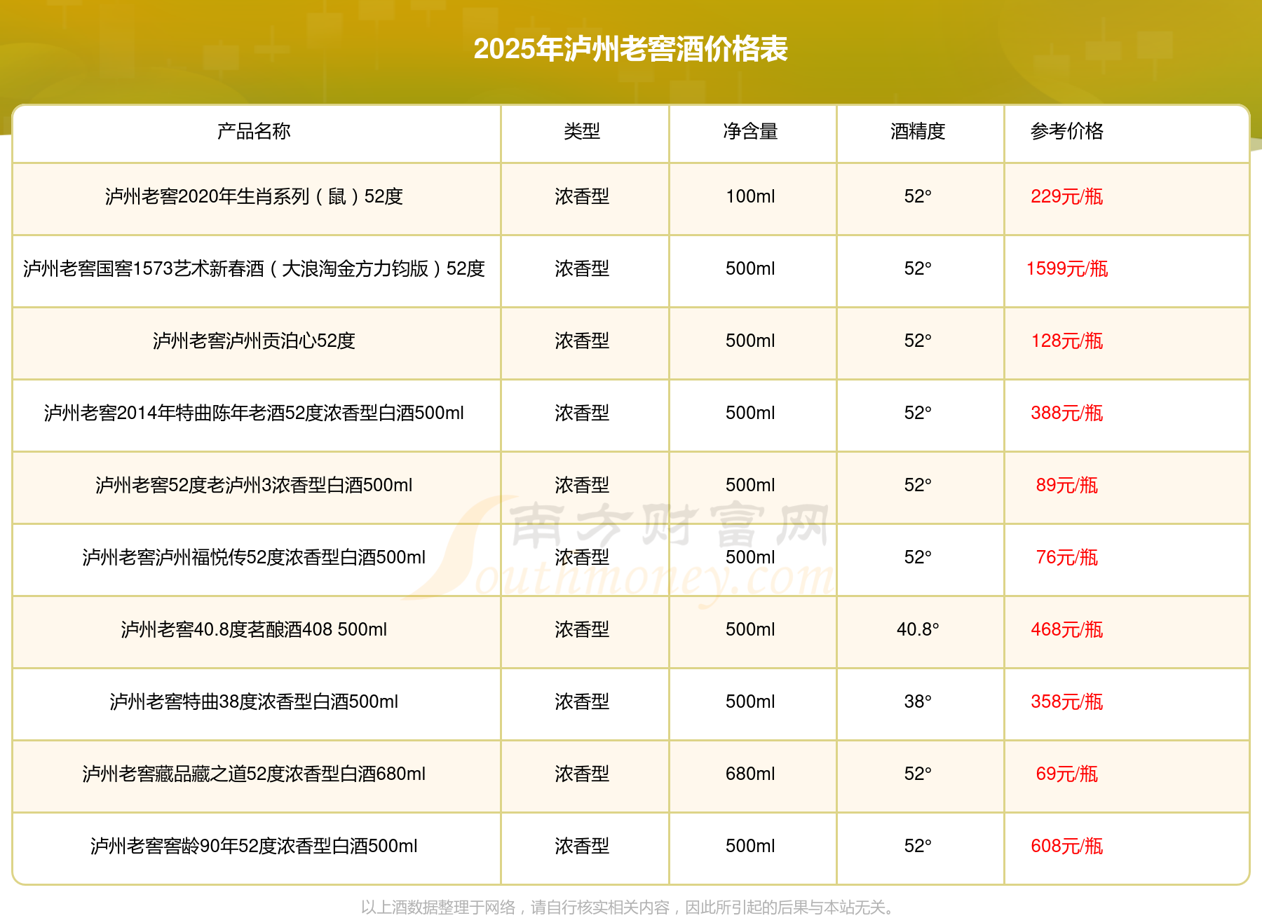 同品牌其他酒價(jià)格表