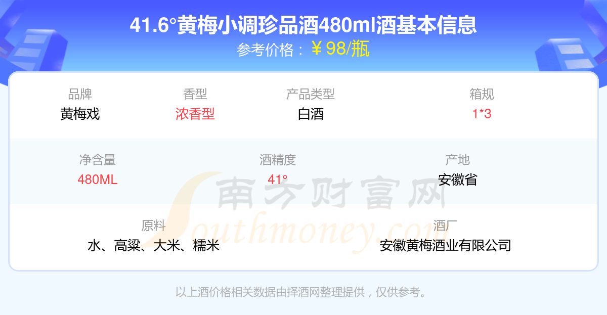41.6°黃梅小調(diào)珍品酒480ml基本信息