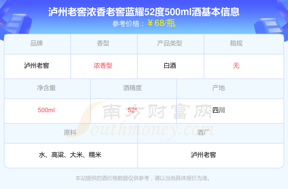 瀘州老窖濃香老窖藍耀52度500ml基本信息