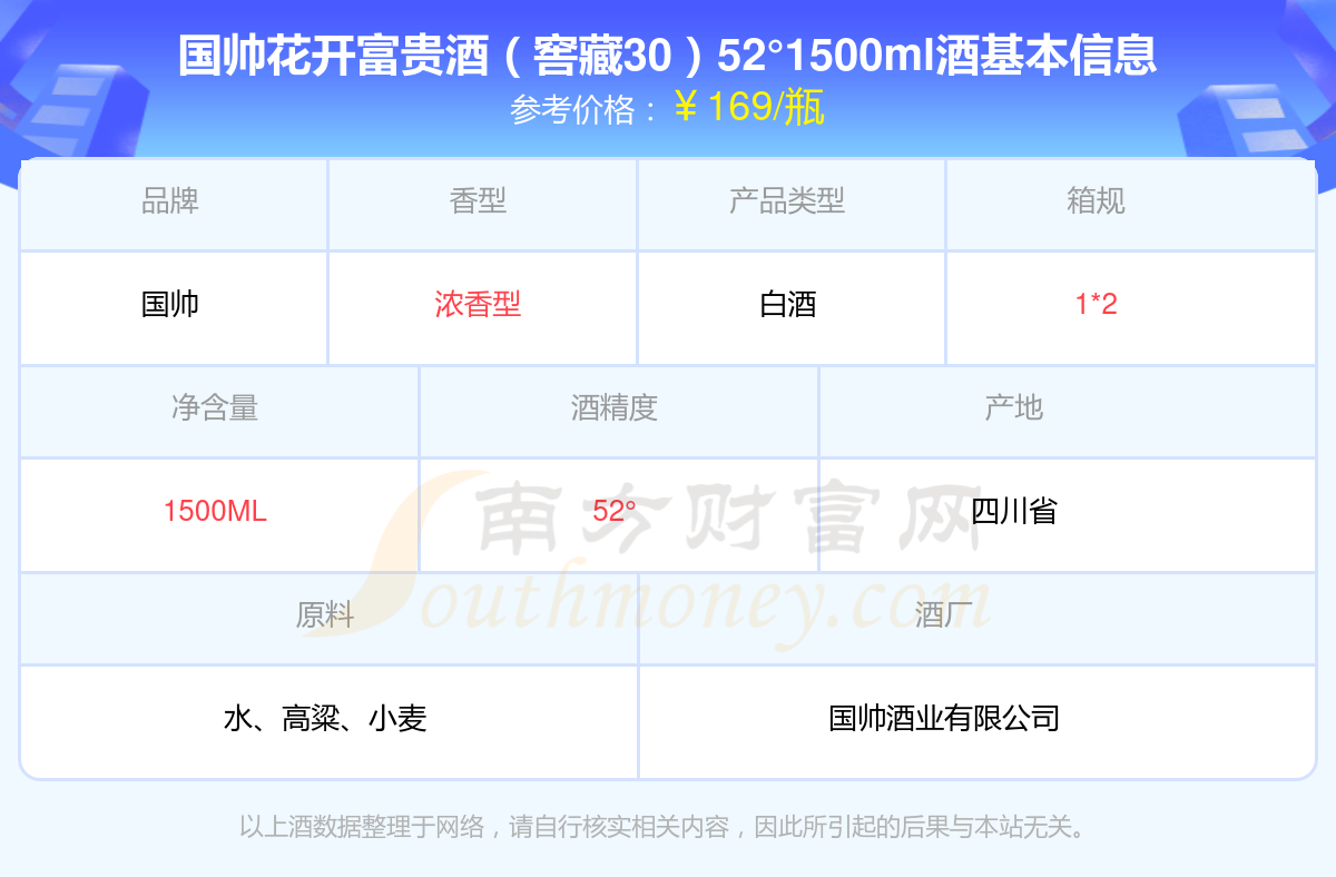 國帥花開富貴酒(窖藏30)52°1500ml基本信息