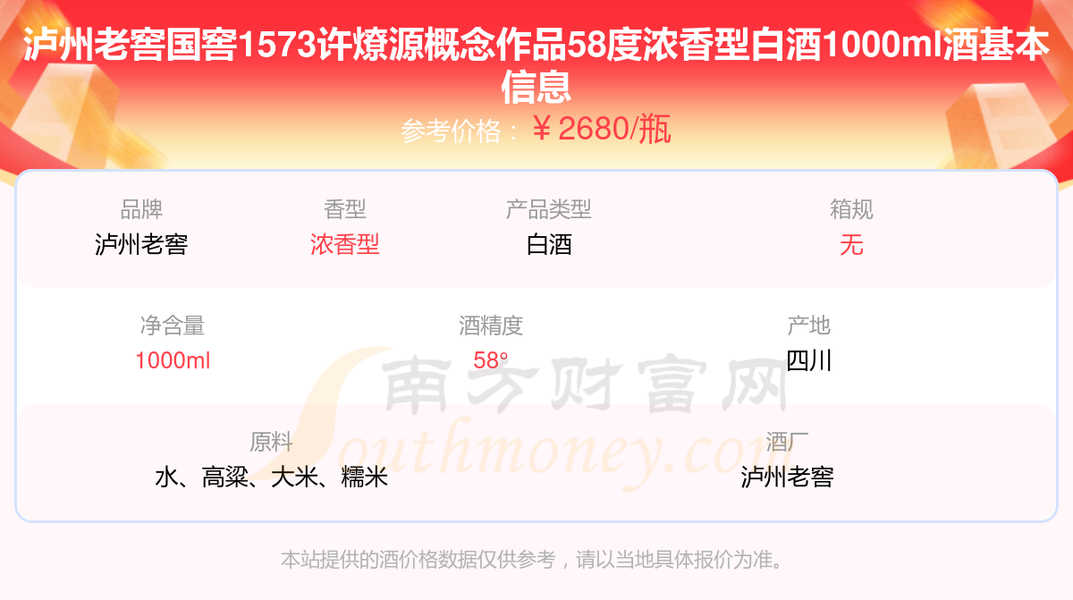 瀘州老窖國(guó)窖1573許燎源概念作品58度濃香型白酒1000ml基本信息