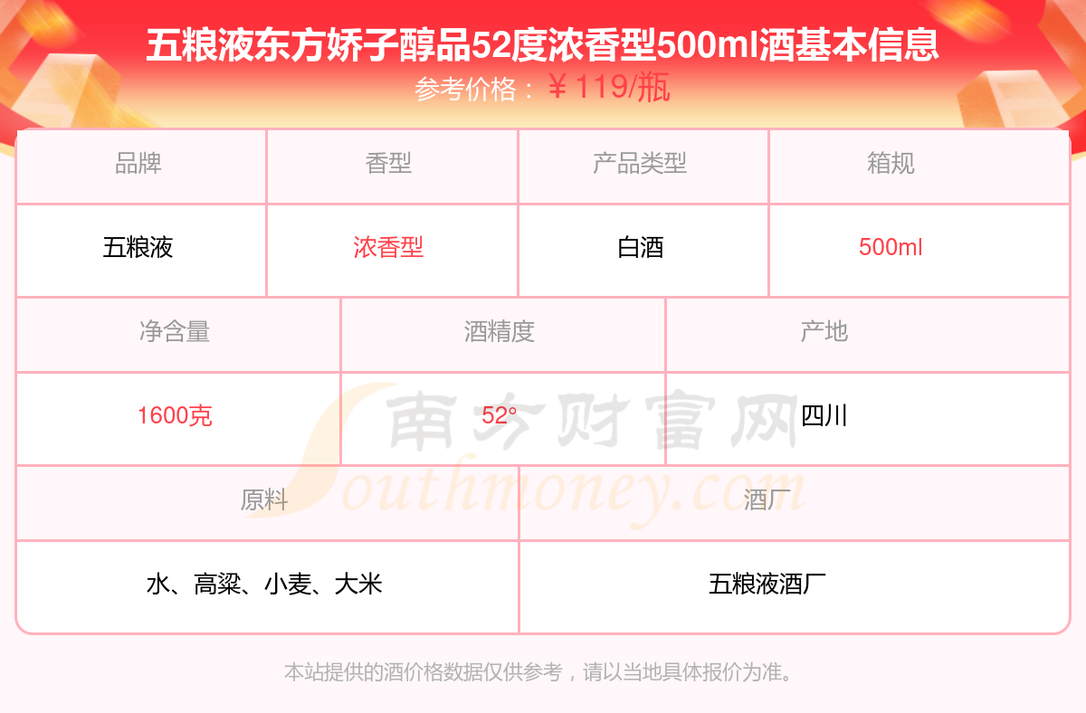 五糧液東方嬌子醇品52度濃香型500ml基本信息