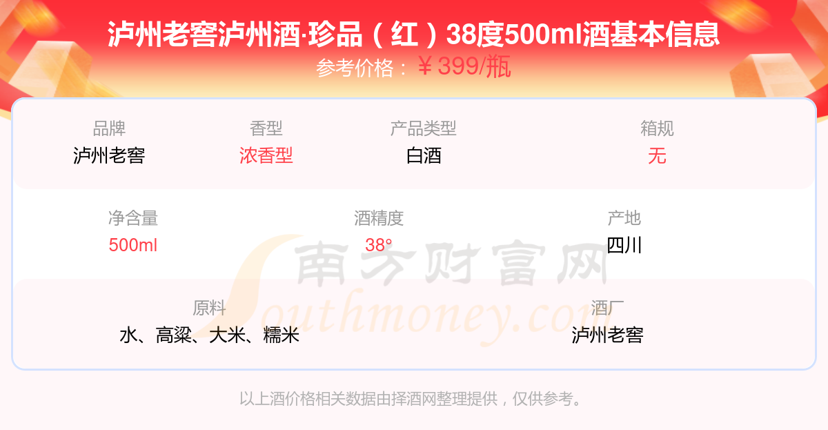 瀘州老窖瀘州酒·珍品(紅)38度500ml基本信息