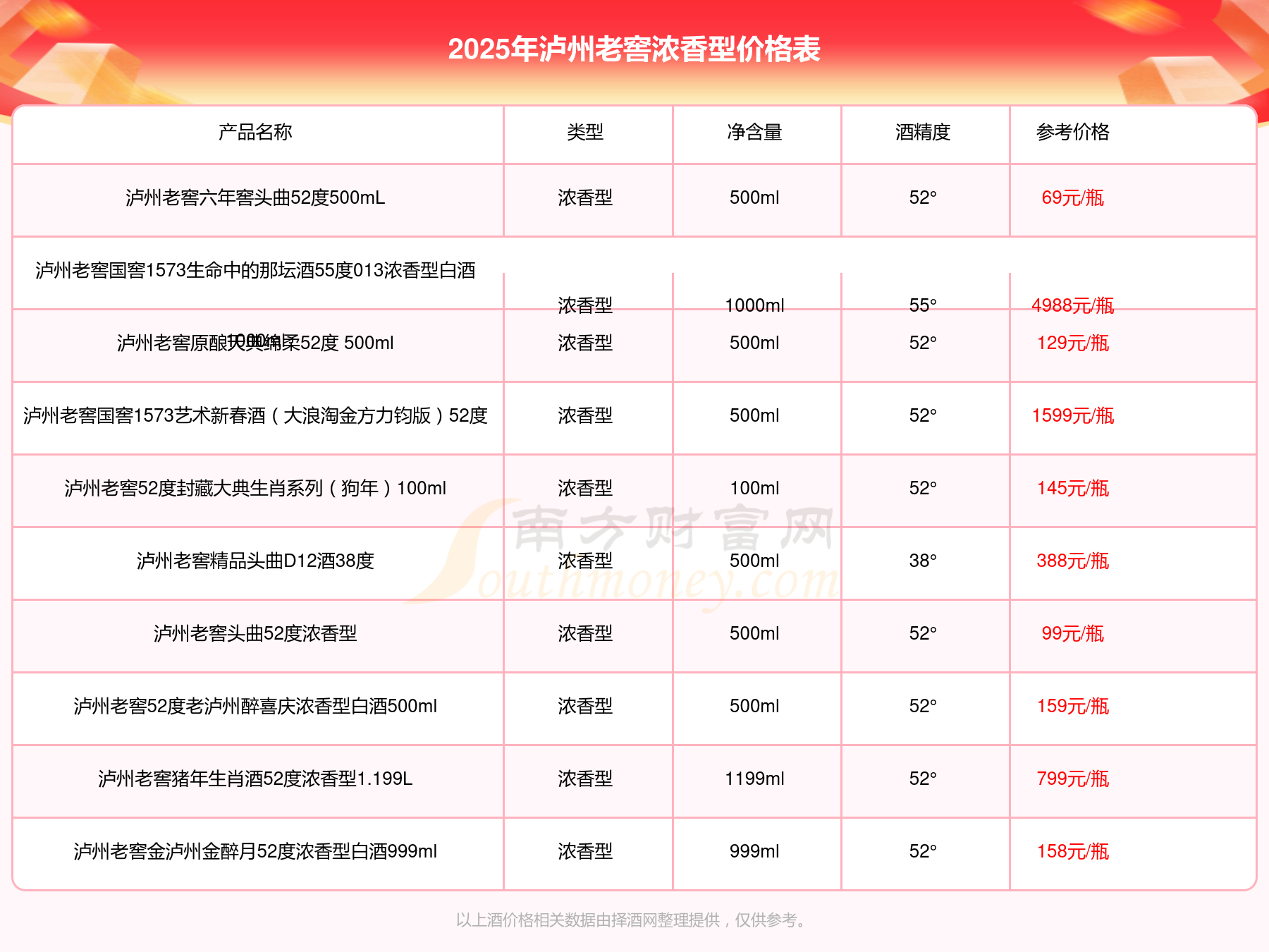 2025瀘州老窖濃香型酒最新價(jià)格: