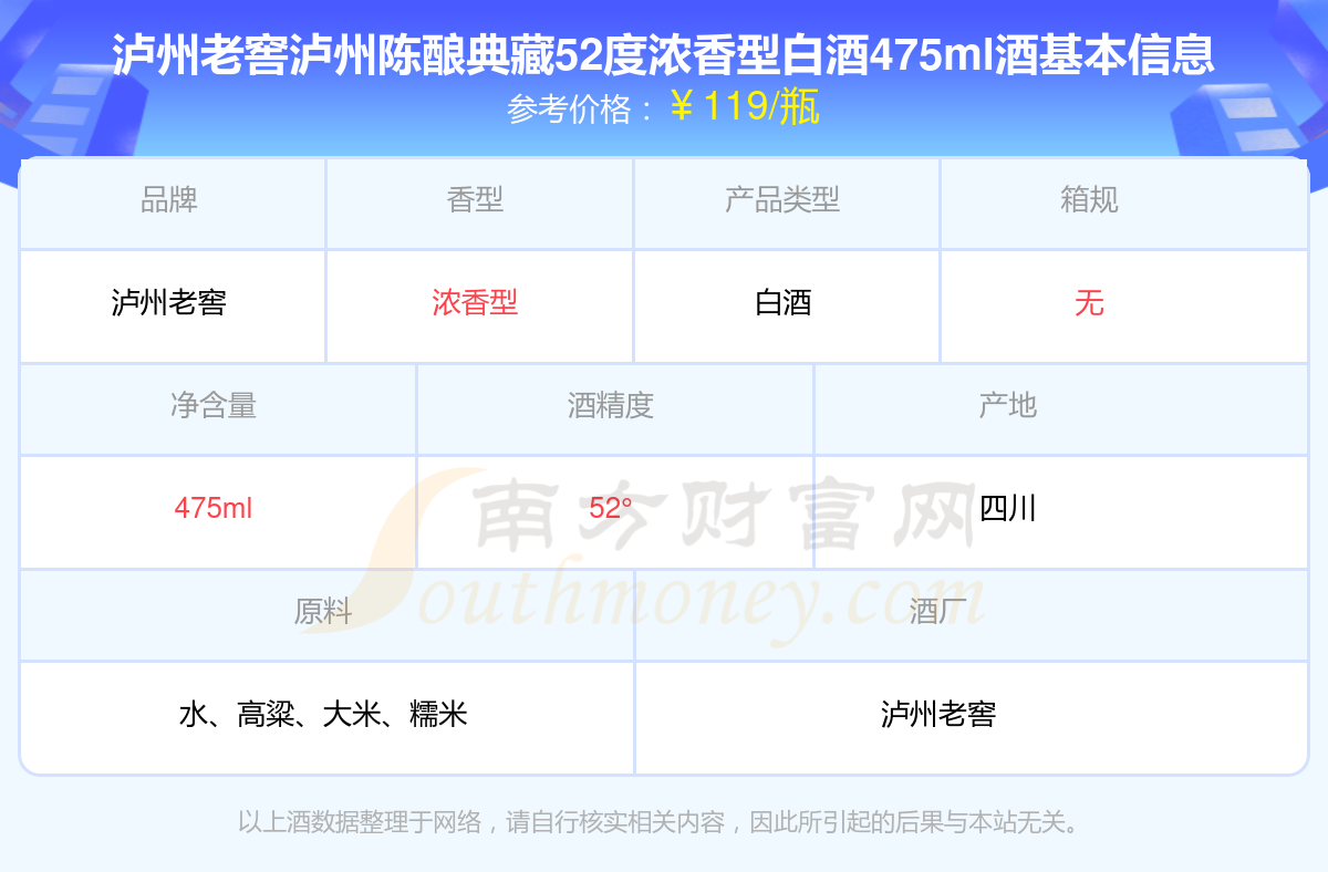 瀘州老窖瀘州陳釀典藏52度濃香型白酒475ml基本信息