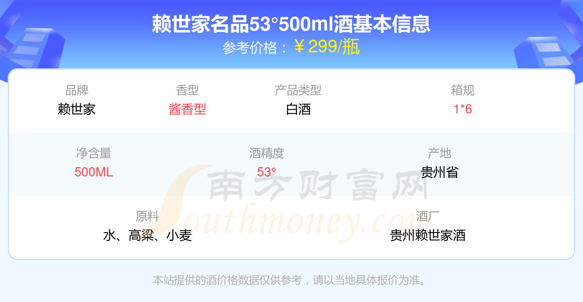 賴世家名品53°500ml基本信息