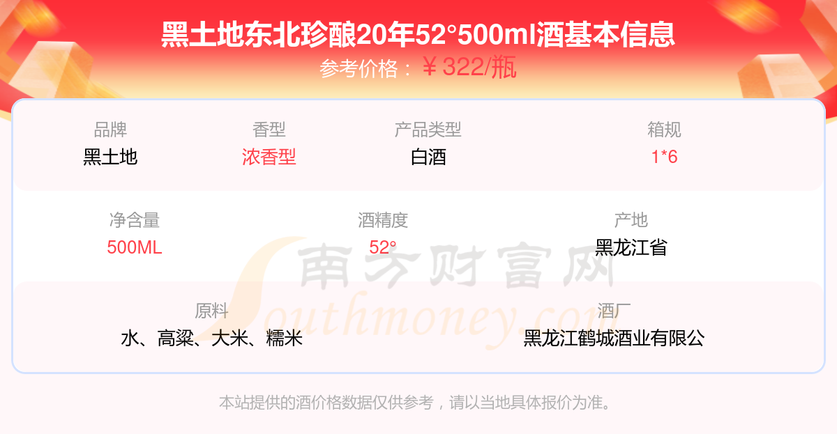 黑土地東北珍釀20年52°500ml基本信息