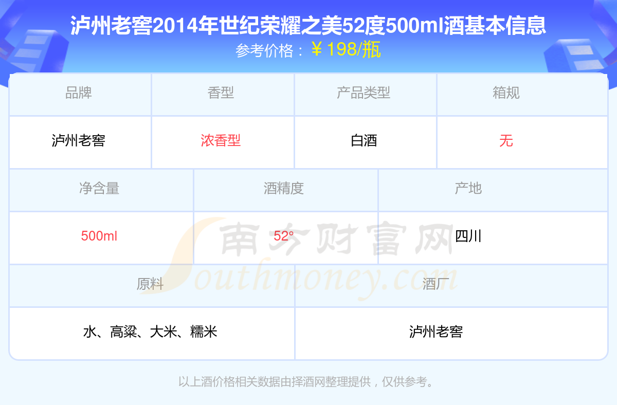 瀘州老窖2014年世紀(jì)榮耀之美52度500ml基本信息