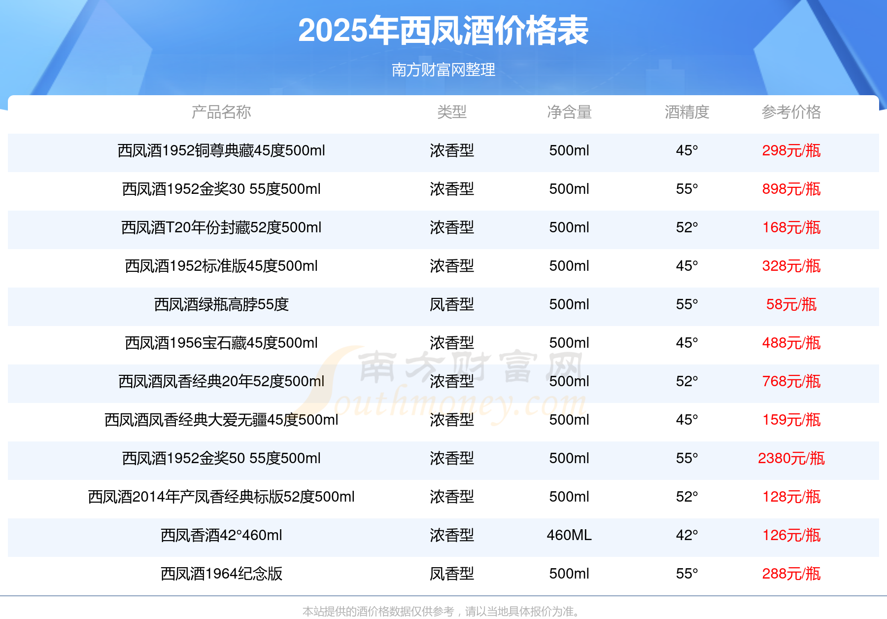 西鳳酒最新價格2025:
