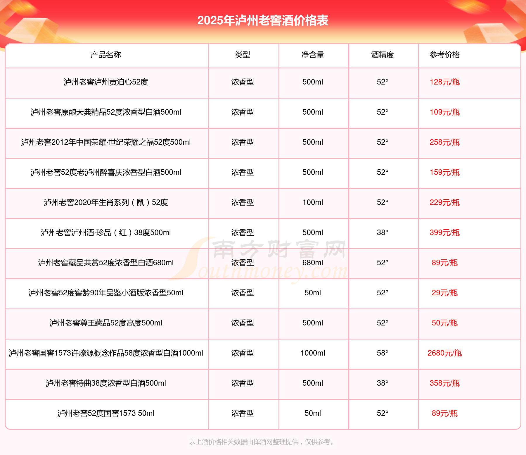 瀘州老窖國窖1573春釀鼠兆豐年E 55度參考價(jià)17999元/瓶、瀘州老窖國窖1573生命中的那壇酒55度014參考價(jià)9999元/瓶、瀘州老窖國窖1573春釀鼠兆豐年A 55度參考價(jià)5088元/瓶、瀘州老窖國窖1573生命中的那壇酒55度013濃香型白酒1000ml參考價(jià)4988元/瓶、瀘州老窖國窖1573生命中的那壇酒55度009 1000ml參考價(jià)4288元/瓶。