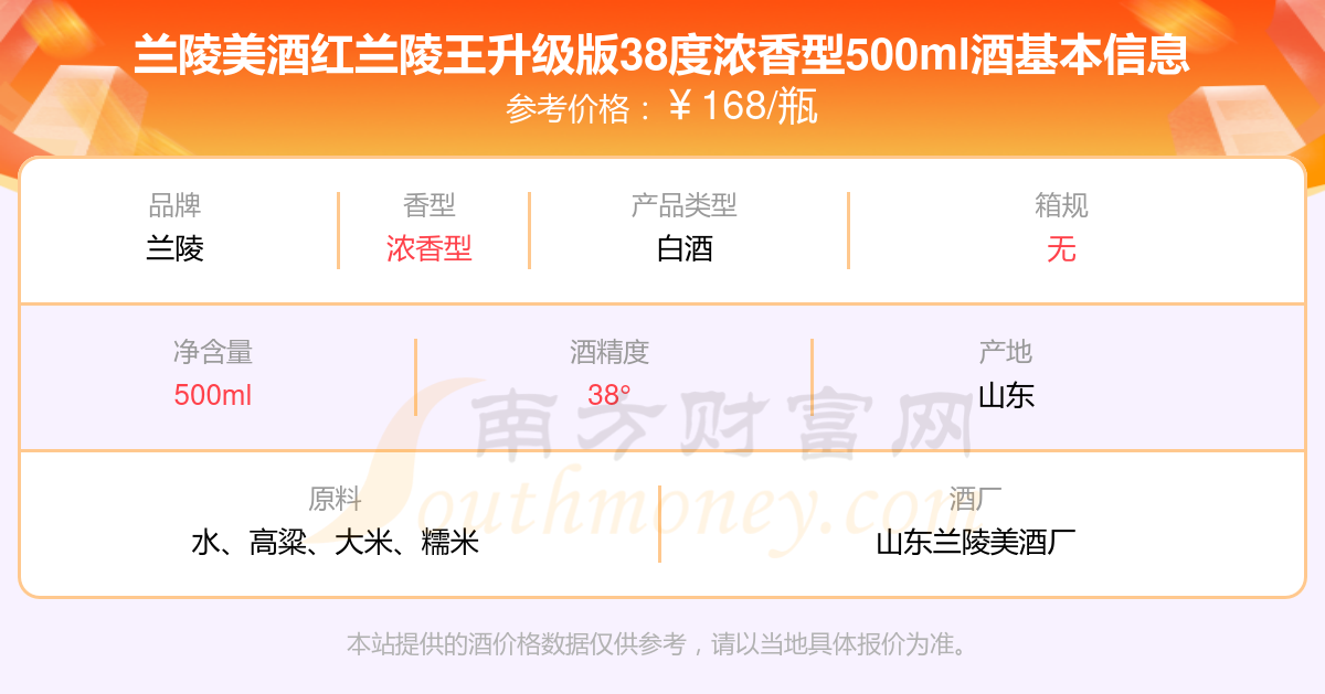 蘭陵美酒紅蘭陵王升級版38度濃香型500ml基本信息