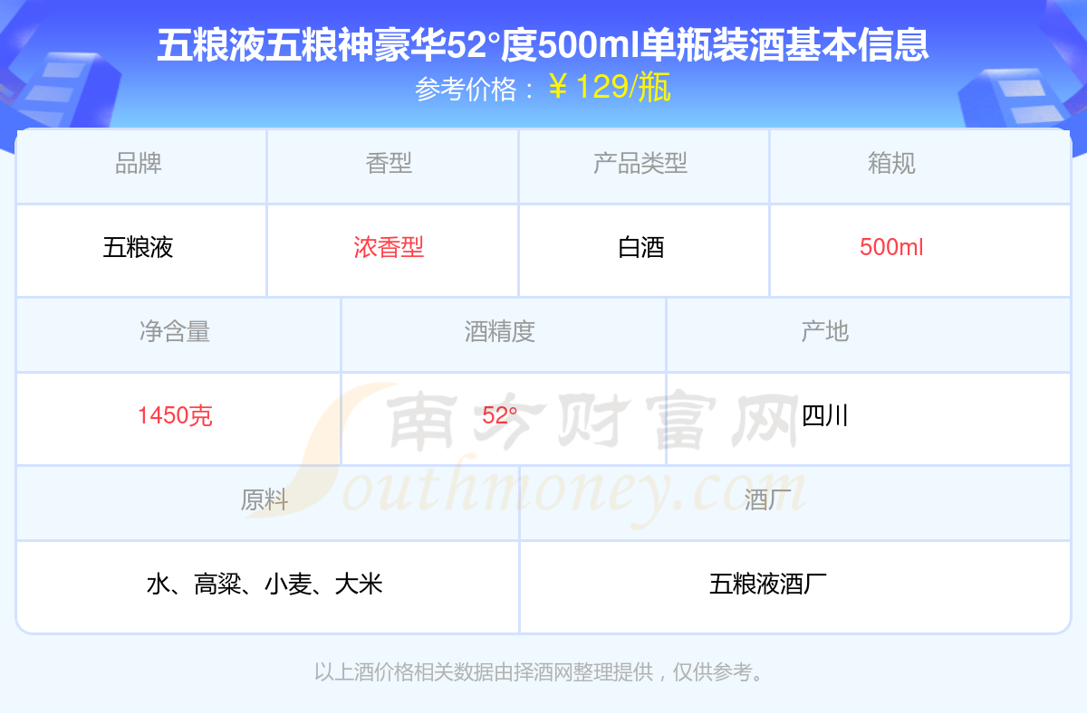 五糧液五糧神豪華52°度500ml單瓶裝基本信息