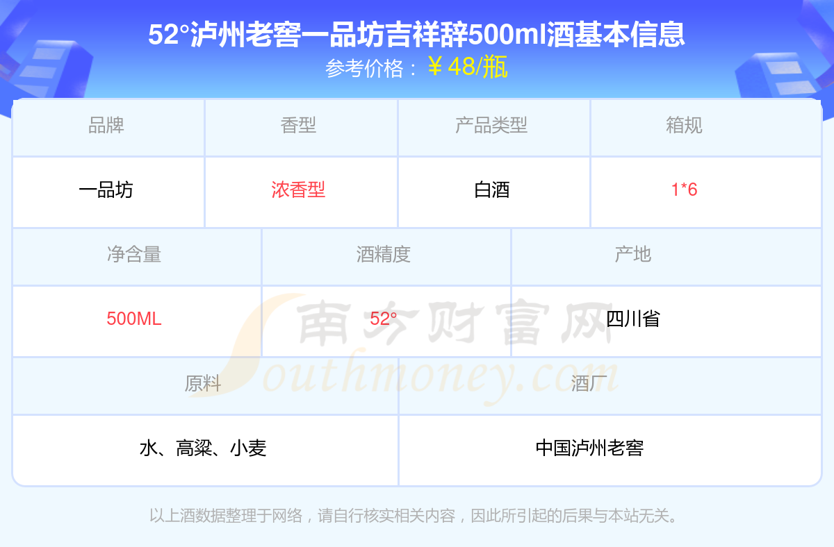 52°瀘州老窖一品坊吉祥辭500ml基本信息