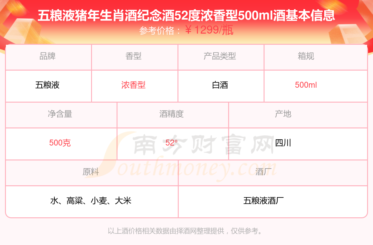 五糧液豬年生肖酒紀(jì)念酒52度濃香型500ml基本信息