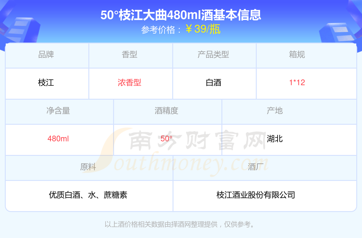 50°枝江大曲480ml基本信息