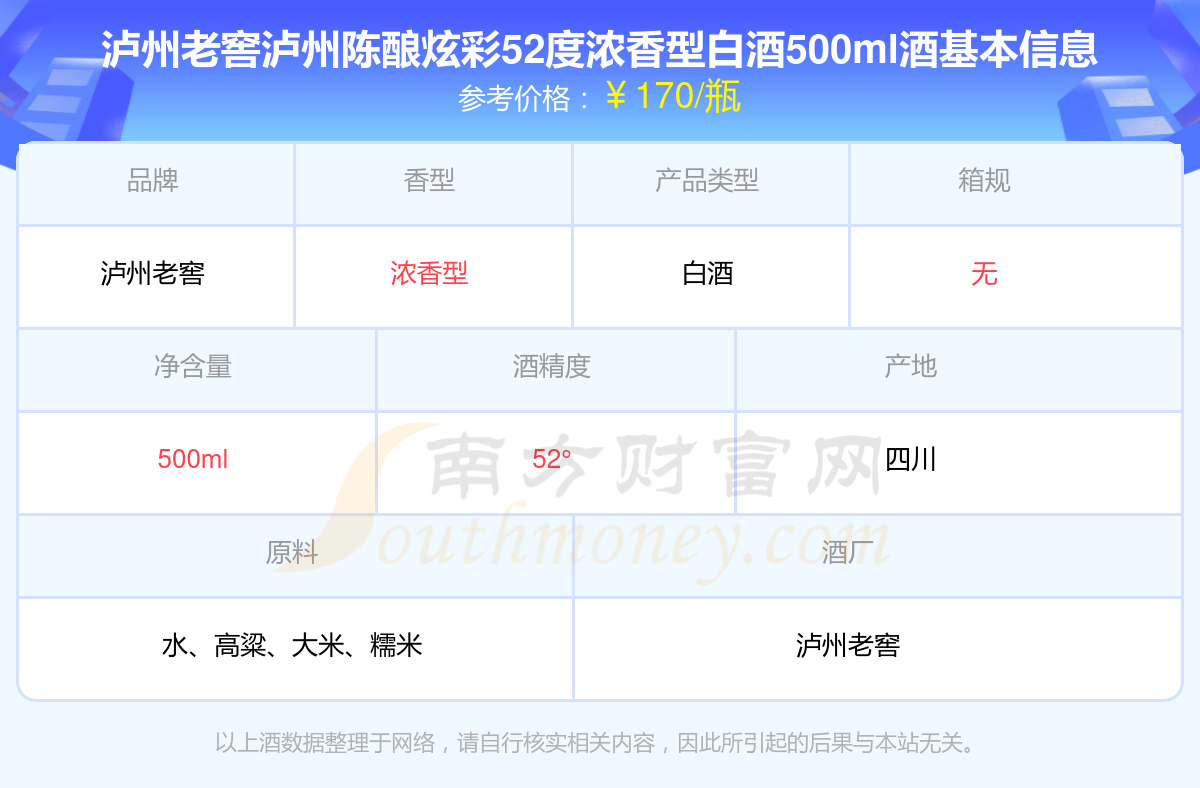 瀘州老窖瀘州陳釀炫彩52度濃香型白酒500ml基本信息
