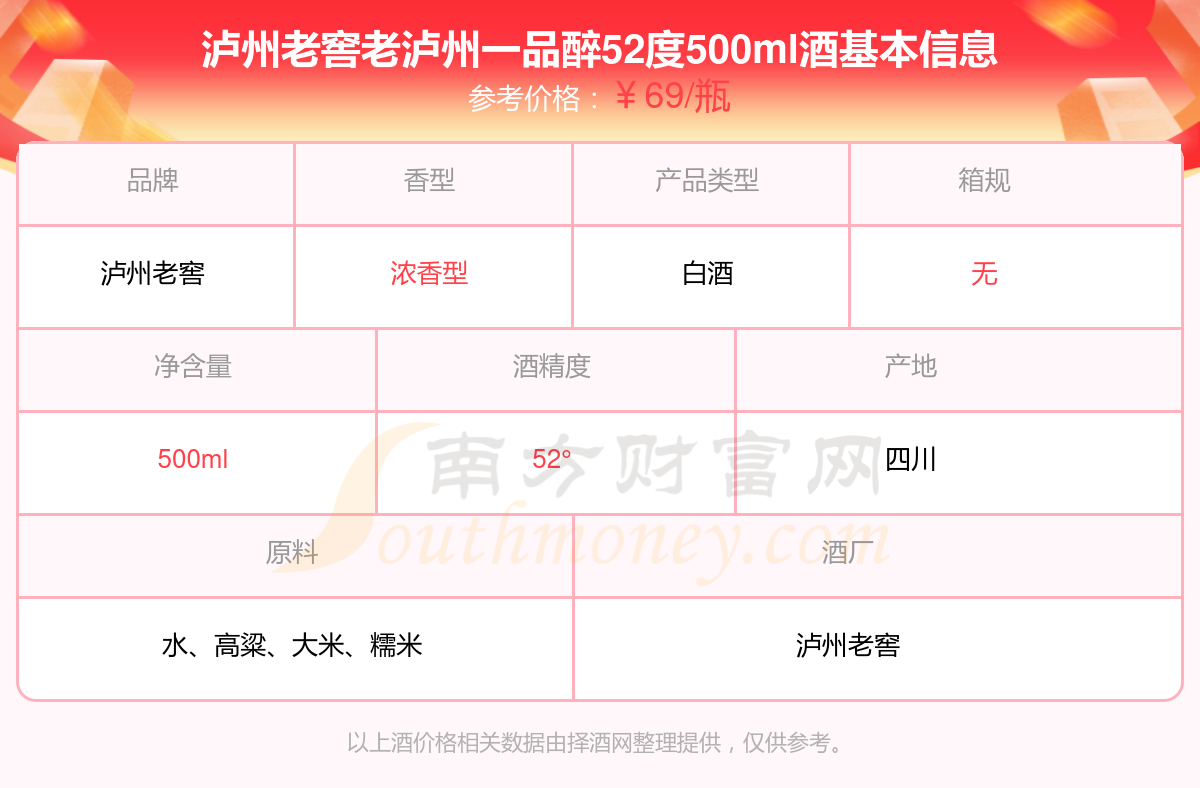 瀘州老窖老瀘州一品醉52度500ml基本信息